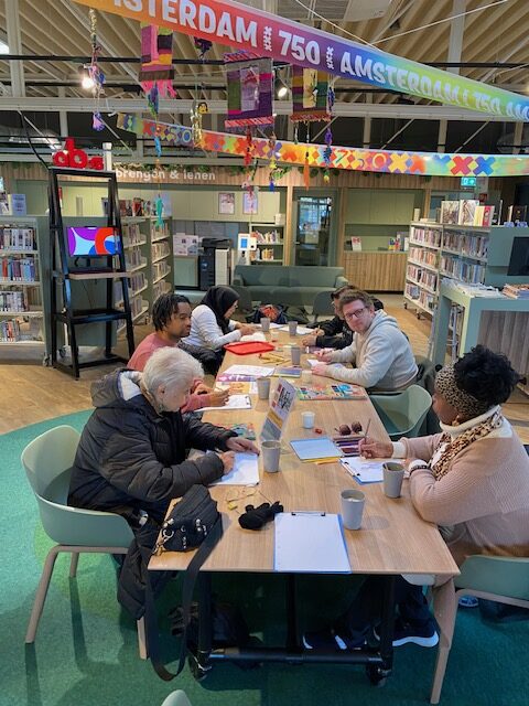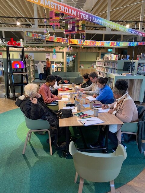 Tijdens de wekelijkse workshops Beeldende tekenlessen in OBA Molenwijk komen jong en oud samen om te werken aan hun mentale, fysieke en spirituele gezondheid. In de lessen wordt gebruikgemaakt van verschillende materialen, zoals potloden, stiften en papier. Het doel van de tekenlessen is dat deelnemers positieve verhalen, zoals hun gedachten, behoeften, ideeën en gevoelens, op papier leren uitdrukken.